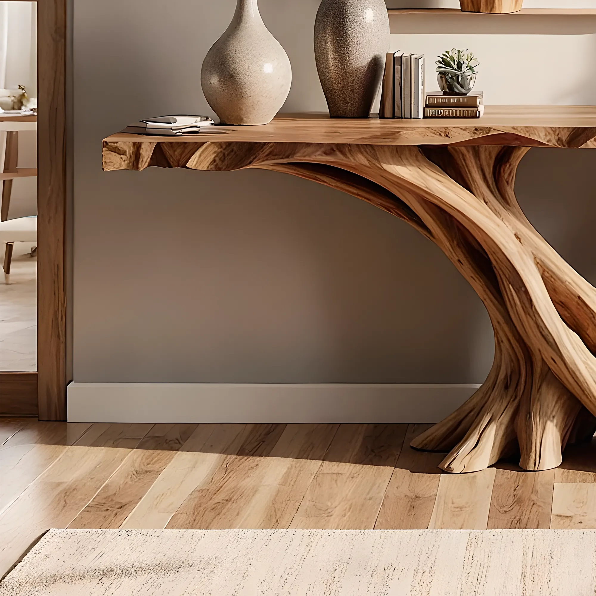 With the Artisan Live Edge Console Table, craftsmanship meets contemporary design. Every surface is shaped by skilled hands, preserving the natural curvature of the wood for an organic yet refined aesthetic. It’s more than furniture—it’s a statement of artistry and authenticity.